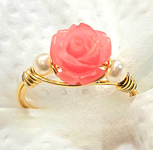 Carved Shell Rose Golden Wired Ring