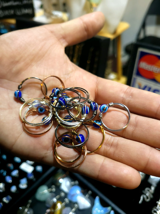 Evil Eye Wire Ring - Handmade